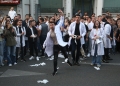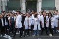 Students of the Faculty of Medicine protesting in front of the Ministry of Education. The students reject the law that forces them to work for 3-5 years in their country after completing their studies or to pay the full school fee. The students have refused the fee of 240,000 lek if they do not refuse the work contract for 2-5 years in Albania.