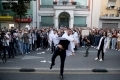 MEDICAL STUDENTS IN FRONT OF THE MINISTRY OF EDUCATION - Students of the Faculty of Medicine throwing toilet paper towards the Ministry of Education during a protest. The students reject the law that forces them to work for 3-5 years in their country after completing their studies or to pay the full school fee. The students have refused the fee of 240,000 lek if they do not refuse the work contract for 2-5 years in Albania.