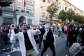 Students of the Faculty of Medicine throwing toilet paper towards the Ministry of Education during a protest. The students reject the law that forces them to work for 3-5 years in their country after completing their studies or to pay the full school fee. The students have refused the fee of 240,000 lek if they do not refuse the work contract for 2-5 years in Albania.