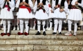 Children in traditional clothes during the inauguration ceremony of the bust of former Greek Prime Minister Konstantinos Mitsotakis in Dervican in Dropulli, while the square was also named after him. Mitsotakis is honored as the first Greek prime minister who visited Albania in 1990, on the eve of the fall of the communist dictatorship.