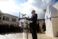 Dropull mayor, Dhimitraq Toli speaking during the inauguration ceremony of the bust of former Greek Prime Minister Konstantinos Mitsotakis in Dervican in Dropulli, while the square was also named after him. Mitsotakis is honored as the first Greek prime minister who visited Albania in 1990, on the eve of the fall of the communist dictatorship.
