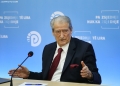 Former Prime Minister Sali Berisha speaking during a press conference from the headquarters of the democratic party. Berisha has shown a video about how the Socialist Party used criminal groups to influence the May 14 elections in Shkoder, while announcing that the opposition may go on hunger strike if constitutional rights are not respected.