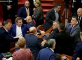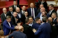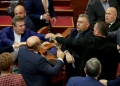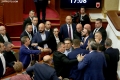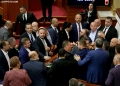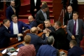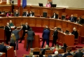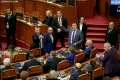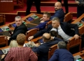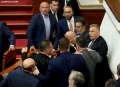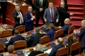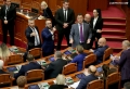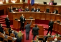 Opposition MPs in a moment of tension during a parliamentary session. The session was interrupted while there were many debates between the MPs of the majority and the opposition, while the MP Nallbati tried to hit the MP Sina. The majority has rejected the request of the opposition MPs to set up an investigation commission.