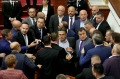 MOMENTS OF TENSION IN PARLIAMENT - MPs Bledjon Nabllbati, Vullnet Sina and Damian Gjiknuri in a moment of tension during a parliamentary session. The session was interrupted while there were many debates between the deputies of the majority and the opposition, while the MP Nallbati tried to hit the MP Sina. The majority has rejected the request of the opposition MPs to set up an investigation commission.