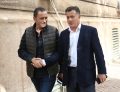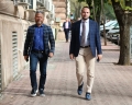 MPs Bujar Leskaj and Dashnor Sula exiting a meeting of the parliamentary group of the DP, where MPs supporting Berisha and Bardhi participated. The meeting was called after the last parliamentary session was interrupted as a result of the tensions between the MPs of the majority and the opposition in connection with the establishment of 3 commissions of investigation in relation to issues affecting members of the government.