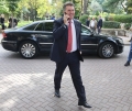 MP Fatmir Mediu entering a meeting of the parliamentary group of the DP, where MPs supporting Berisha and Bardhi participated. The meeting was called after the last parliamentary session was interrupted as a result of the tensions between the MPs of the majority and the opposition in connection with the establishment of 3 commissions of investigation in relation to issues affecting members of the government.