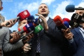 MP Ervin Salianji speaking for journalists after a tense parliament session. The opposition MPs have gathered the chairs of their socialist colleagues around the podium, not allowing them to sit down, as a sign of protest since the majority MPs have not approved the establishment of the investigative commissions they requested. Salianji said that the action of the opposition will be escalated.