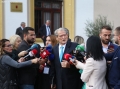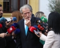 BERISHA SPEAKS TO JOURNALISTS - Former Prime Minister, Sali Berisha speaking to journalists after a tense parliament session. The opposition MPs have gathered the chairs of their socialist colleagues around the podium, not allowing them to sit down, as a sign of protest since the majority MPs have not approved the establishment of the investigative commissions they requested. Berisha has warned about hunger strikes.