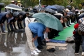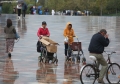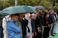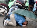Citizens praying with umbrellas in their hands during a rainy day, while the roads are flooded by heavy rains in Tirana, creating heavy traffic. Albania has been affected by the storm Ciaran which has hit Europe and in Italy it has caused several victims and great material damage. As a result of the heavy rains, traffic has been blocked on some road axes, while water has entered some homes and businesses.