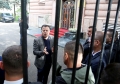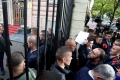 MP Gazment Bardhi speaking at the door of the Presidency of the Parliament. Some of the MPs of the democratic party were expelled from the Secretariat of Ethics after the tensions created during the last parliamentary session and the door has been closed. The MPs chose to enter by force through the windows or by crossing the railings.
