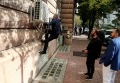 MP Bledjon Nallbati climbing on one of the windows of the headquarters of the Parliament in Tirana. Some of the MPs of the democratic party were expelled from the Secretariat of Ethics after the tensions created during the last parliamentary session and the door has been closed. The MPs chose to enter by force through the windows or by crossing the railings.
