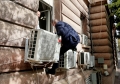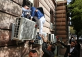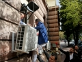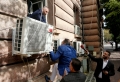 DP MPS IN THE HEADQUARTRES OF THE PARLIAMENT - MP Ervin Salianji climbing on one of the windows of the headquarters of the Parliament in Tirana. Some of the MPs of the democratic party were expelled from the Secretariat of Ethics after the tensions created during the last parliamentary session and the door has been closed. The MPs chose to enter by force through the windows or by crossing the railings.