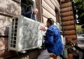 MPs Bledjon Nallbati and Lefter Geshtenja throwing a chair from the window of the headquarters of the Parliament. Some of the MPs of the democratic party were expelled from the Secretariat of Ethics after the tensions created during the last parliamentary session and the door has been closed. The MPs chose to enter by force through the windows or by crossing the railings.