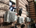 MP Ervin Salianji climbing on one of the windows of the headquarters of the Parliament in Tirana. Some of the MPs of the democratic party were expelled from the Secretariat of Ethics after the tensions created during the last parliamentary session and the door has been closed. The MPs chose to enter by force through the windows or by crossing the railings.