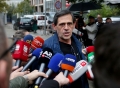 The Mayor of Kamze, Rakip Suli, speaking to journalists after leaving the offices of SPAK, after being called to hand over some documents related to some procedures carried out by the Kamez Municipality for social housing and accommodation for families damaged by the earthquake.