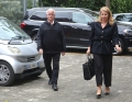 Contructor Fatmir Bektashi and laywer Vasilika Hysi entering a session of the Special Court (GJKKO) to give his explanations regarding the privatization of the former Partizani sports complex. Bektashi is subject to the obligation to appear and prohibition to leave the country.