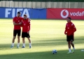 The coach of the Albanian National Football Team, Sylvinho, and the players of the national team during a training session before the two remaining valid matches for the European 2024 qualifiers with the national teams of Moldova and the Faroe Islands, in the fields of the House of Football.