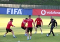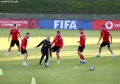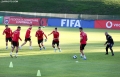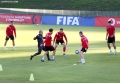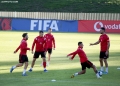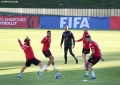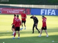 Players of the Albanian national football team during a training session before the two remaining valid matches for the European 2024 qualifiers with the national teams of Moldova and the Faroe Islands, in the fields of the House of Football.