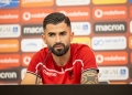 The player of the Albanian national football team, Elseid Hysaj speaking at a press conference before the two remaining valid matches for the European 2024 qualifiers with the national teams of Moldova and the Faroe Islands.