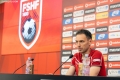 The player of the Albanian national football team, Ertrit Berisha speaking at a press conference before the two remaining valid matches for the European 2024 qualifiers with the national teams of Moldova and the Faroe Islands.