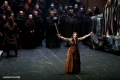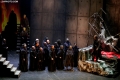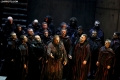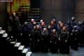 Opera singers performing the opera Attila by the Italian composer Giuseppe Verdi, directed by Ada Gurres on the stage of the National Theater of Opera and Ballet in Tirana.