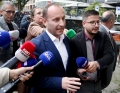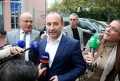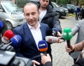 The mayor of Kucove, Kreshnik Hajdari speaking to journalists after leaving the offices of SPAK. Hajdari is accused of hiding a conviction in Greece in the decriminalization form.