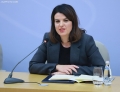 Minister of Tourism and Environment, Mirela Kumbaro speaking during a press conference where they announced the signing of the agreement for the noise limit level for a given environment in the field of economic and social activities.