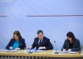 AGREEMENT FOR NOISE LIMITATION IS SIGNED - Minister of Health and Social Welfare, Albana Kociu, Minister of the Interior, Taulant Balla and Minister of Tourism and Environment, Mirela Kumbaro speaking during a press conference where they announced the signing of the agreement for the noise limit level for a given environment in the field of economic and social activities.