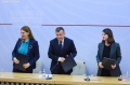The Minister of Health and Social Welfare, Albana Kociu, the Minister of the Interior, Taulant Balla and the Minister of Tourism and Environment, Mirela Kumbaro entering during a press conference where they announced the signing of the agreement on the limit level of noise for a given environment in the field of economic-social activities.