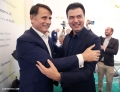 The chairman of the democratic party, Lulzim Basha and Ben Blushi on the second day of the book fair in Tirana, where he presented his book Komploti. In the 26th edition of the fair, held in the premises of the palace of congresses, 96 publishing houses were welcomed, while Ben Blushi, Blendi Fevziu and the former French player, Lilian Thuram, presented new books.