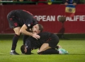 The players of the Albanian national football team, Mario Mitaj and Taulant Seferi during the football match Moldova vs Albania, 1-1, valid for the European 2024 qualifiers, played at the Zimbru Stadium stadium in Chisinau. With this draw, the Albanian national football team mathematically qualifies for the 2024 European Championship.