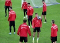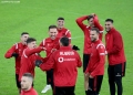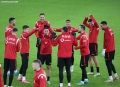 Players of the Albanian national football team during a training session at the Air Albania stadium before the match against the Faroe Islands, valid for the European 2024 qualifiers. After the draw with Moldova, Albania is mathematically qualified for the European 2024.
