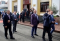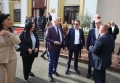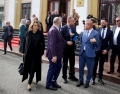 MPs Damian Gjiknuri, Damian Gjiknuri, Evis Kushi and Petro Koci leaving the parliament building after a parliamentary session where the opposition MPs lit cigarettes, while they gathered the chairs around the lectern. During the session, the deputies and ministers of the majority have approved the draft budget for the year 2024.