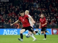 Myrto Uzuni of Albania in a duel during the football match, Albania vs Faroe Islands, 0-0, played at the Air Albania stadium in Tirana. At the end of the game, Albania qualified first in the group with 15 points.