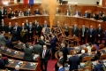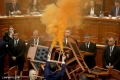 PARLIAMENTARY SESSION - Majority MPs vote while the parliament hall is filled with smoke during a parliamentary session where opposition MPs lit smokers, while they gathered the other chairs around the lectern. During the session, the MPs and ministers of the majority have approved the draft budget for the year 2024.