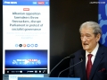 Former Prime Minister Sali Berisha speaking at a press conference in the headquarters of the democratic party. He commented on the change in the security measure for Jamarber Malltez under house arrest while attacking Prime Minister Rama for controlling the justice system.