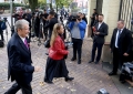 Former Prime Minister Sali Berisha getting out of the car to enter the premises of the headquarters of the parliament, for a meeting of the parliamentary group of the DP with the MPs who support Sali Berisha and Gazment Bardhi. After the meeting, the MPs confirmed that the agreement with Italy will be taken to the Constitutional Court, while they called for the opposition to unite.