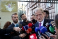 Former Prime Minister Sali Berisha speaking to journalists after he came out of the premises of the headquaters of the parliament, where a meeting of the DP parliamentary group was organized with the MPs who support Sali Berisha and Gazment Bardhi. After the meeting, the MPs confirmed that the agreement with Italy will be taken to the Constitutional Court, while they called for the opposition to unite.