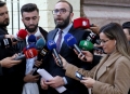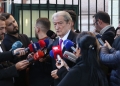 MP Gazment Bardhi speaking to journalists after he came out of the premises of the headquaters of the parliament, where a meeting of the DP parliamentary group was organized with the MPs who support Sali Berisha and Gazment Bardhi. After the meeting, the MPs confirmed that the agreement with Italy will be taken to the Constitutional Court, while they called for the opposition to unite.