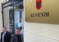 MP Ervin Salinanji coming out of the premises of the headquaters of the parliament, where a meeting of the DP parliamentary group was organized with the MPs who support Sali Berisha and Gazment Bardhi. After the meeting, the MPs confirmed that the agreement with Italy will be taken to the Constitutional Court, while they called for the opposition to unite.