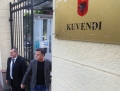 MPs Edi Paloka and Tritan Shehu coming out of the premises of the headquaters of the parliament, where a meeting of the DP parliamentary group was organized with the MPs who support Sali Berisha and Gazment Bardhi. After the meeting, the MPs confirmed that the agreement with Italy will be taken to the Constitutional Court, while they called for the opposition to unite.
