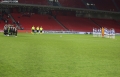 The players of the two teams together with the referees observe a minute of silence in memory of Raphael Dwamena before the football match, Tirana vs Kukesi, 3-2, valid for the Albanian Super League, played at the Air Albania stadium in Tirana.