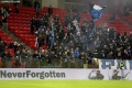 Tirana fans sing and wave flags during the football match, Tirana vs Kukesi, 3-2, valid for the Albanian Super League, played at the Air Albania stadium in Tirana.
