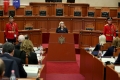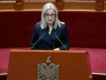 Head of the Constitutional Court, Holta Zacaj speaking during a ceremony organized in the premises of the parliament on the occasion of the 25th anniversary of the Constitution of the Republic of Albania. The current Constitution of the Republic of Albania entered into force on November 28, 1998.