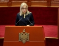 Albanian Ombudsman, Erinda Ballanca during a ceremony organized in the premises of the parliament on the occasion of the 25th anniversary of the Constitution of the Republic of Albania. The current Constitution of the Republic of Albania entered into force on November 28, 1998.