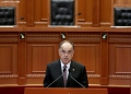 President Bajram Begaj speaking during a ceremony organized in the premises of the parliament on the occasion of the 25th anniversary of the Constitution of the Republic of Albania. The current Constitution of the Republic of Albania entered into force on November 28, 1998.