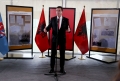 The mayor of Tirana, Erion Veliaj, speaking for the representatives of the Albanian municipalities, members of the Union of Albanian Municipalities in the Region, in the tent set up in Mother Teresa Square, before the celebrations on the occasion of November 28, the 111th anniversary of the Declaration of Independence.