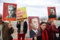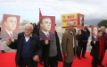 Communists with Albanian flags and posters with the image of Enver Hoxha at the Nena Shqiperi monument during the tributes at the Martyrs' Cemetery, in honor of the 79th anniversary of the Liberation of Albania.