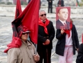 COMMUNIST HOMAGES FOR NOVEMBER 29 - Communists with Albanian flags and posters with the image of Enver Hoxha at the Nena Shqiperi monument during the tributes at the Martyrs' Cemetery, in honor of the 79th anniversary of the Liberation of Albania.