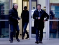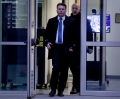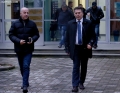 The chairman of the republican party and former defense minister, Fatmir Mediu and his lawyer Ardin Visha leaving from a court session of the Special Court for Corruption and Organized Crime, GJJKO on the case of the Gerdec tragedy, where the next witnesses were questioned. The media is accused of abuse of office.